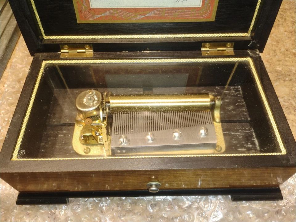 Les boîtes à musique Thorens sont populaires parce que vous pouvez regarder le mouvement pendant qu’il joue, et beaucoup ont un look épuré du milieu du siècle qui convient à la décoration des fêtes. Un couvercle transparent permet également de vérifier plus facilement les problèmes évidents sans ouvrir le boîtier. Certains modèles ont été offerts souvent, vous pouvez donc voir des plaques de gravure qui peuvent affecter la revente en fonction de l’acheteur.