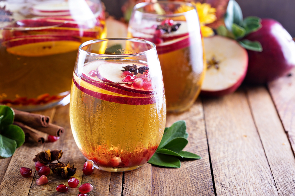 Dans un grand pichet, mélangez le cidre de pomme avec quelques bâtons de cannelle, des clous de girofle et de l’anis étoilé. Ajoutez un filet de jus de citron et une cuillerée de miel ou de sirop d’érable pour plus de douceur. Remuer pour combiner et réfrigérer pendant au moins 30 minutes pour laisser les épices infuser. Au moment de servir, versez le punch dans des verres remplis de glace et complétez chacun d’eux avec de l’eau gazeuse pour un pétillant rafraîchissant.