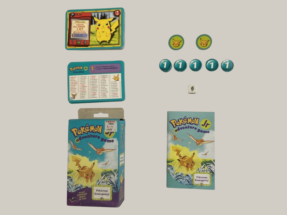 En 1999, Hasbro a lancé Pokémon Jr. Adventure Game, un jeu de société destiné aux jeunes joueurs qui leur permet de voyager à travers le monde Pokémon. Ce jeu est conçu pour les enfants âgés de 6 ans et plus, avec un gameplay simple avec beaucoup d’interactions. Sa rareté aujourd’hui est due à une production limitée, ce qui l’a amené à devenir une pièce de collection. Cette édition se vend souvent entre 100 et 200 dollars, selon l’état de l’ensemble.
