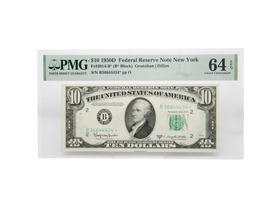 Même si bon nombre de ces billets ont circulé, la variante du billet étoilé est devenue un symbole de rareté. Ces billets présentent un portrait d’Andrew Jackson, et leur valeur dépend aujourd’hui de leur état et de leur numéro de série. En bon état, un billet étoilé de 10 $ de 1950 pourrait être évalué entre 500 et 800 $ environ.