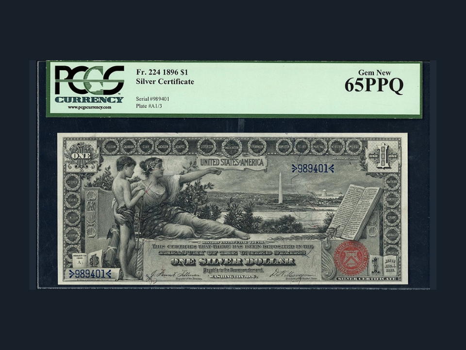 Le billet de 5 $ de la série éducative de 1896 est l’un des billets de banque les plus emblématiques des États-Unis. Il présente des figures allégoriques représentant « l’histoire » et « l’électricité en tant que force dominante dans le monde ». Les notes étoilées pour ce billet sont extrêmement rares et très précieuses.