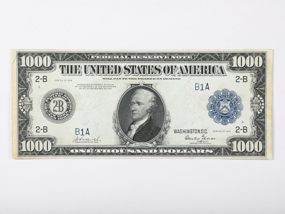 Le billet de 1 000 $ de 1918 est considéré comme l’un des plus beaux billets jamais émis par le gouvernement américain, représentant un portrait d’Alexander Hamilton. Les billets vedettes de cette série sont exceptionnellement rares et leur valeur monte en flèche parmi les collectionneurs.