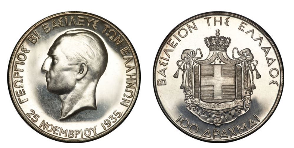 La pièce de 100 drachmes du Royaume de Grèce, frappée dans les années 1930, est une pièce précieuse de l’histoire grecque. Représentant le roi George II d’un côté et des symboles grecs anciens de l’autre, cette pièce est évaluée entre 100 et 300 dollars. Les collectionneurs recherchent cette pièce en raison de ses liens historiques avec la monarchie grecque, qui a pris fin dans les années 1970.