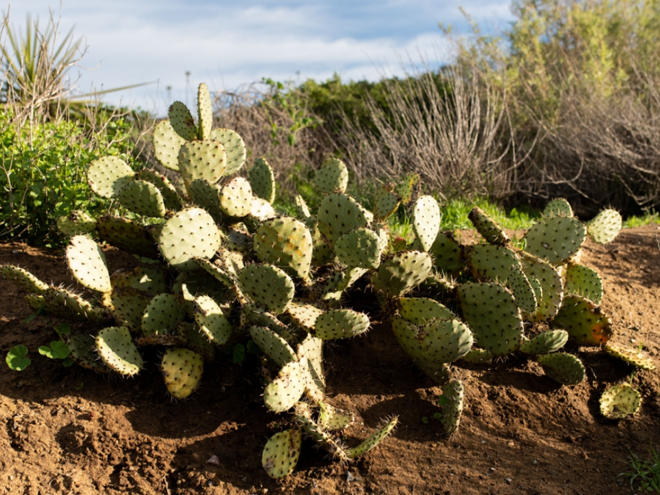 Le figue de Barbarie est une plante épineuse résistante à la sécheresse que l’on trouve souvent le long des dunes côtières, où ses coussinets durs et charnus l’aident à survivre à des conditions difficiles. Le cactus fleurit au début du printemps, produisant de grandes fleurs jaunes, oranges ou rouges vifs qui attirent les pollinisateurs comme les abeilles et les colibris. Sa capacité à prospérer dans des environnements secs et salés en fait une plante essentielle à la stabilisation des dunes, ses racines aidant à ancrer les sables mouvants. Le figue de Barbarie produit également des fruits comestibles, appelés thons, qui constituent une source de nourriture pour la faune.