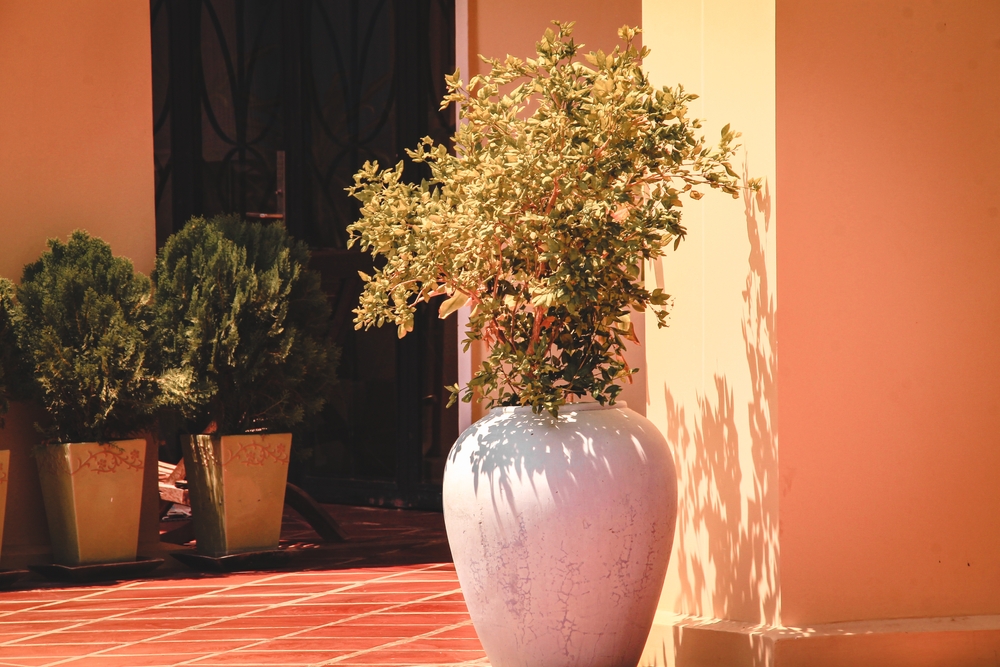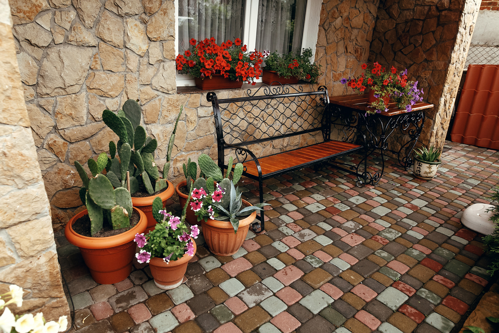Les pieds de pot ou les contremarches soulèvent les conteneurs légèrement au-dessus du sol. Ce petit détail permet à l’eau de s’écouler librement du fond du pot au lieu de s’accumuler en dessous. Un bon drainage protège à la fois les racines des plantes et la surface du porche ou du patio. Il empêche également la formation de taches d’eau sur le bois ou le béton.