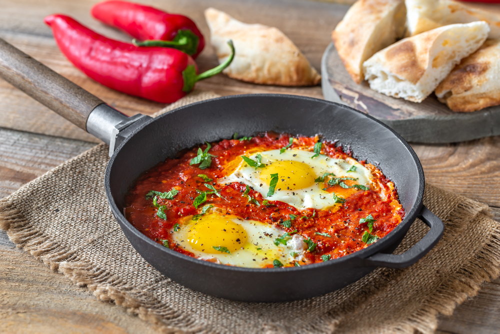 Faites 4 puits dans la sauce et cassez un œuf dans chaque puits. Couvrir la poêle et cuire pendant 5 à 7 minutes jusqu’à ce que les blancs d’œufs soient pris, mais que les jaunes soient encore coulants. Garnir de persil frais ou de coriandre si disponible. Ce plat utilise des produits de base du garde-manger comme des tomates en conserve, de l’ail et des œufs, ce qui le rend à la fois abordable et satisfaisant. C’est un repas réconfortant qui nécessite un minimum d’ingrédients, mais qui regorge de saveur et de chaleur.