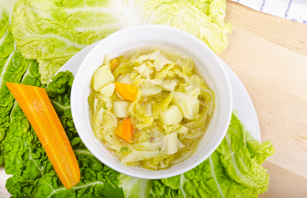 Le chou est peu coûteux, nutritif et parfait pour préparer une grande quantité de soupe. Commencez par faire chauffer 1 cuillère à soupe d’huile d’olive dans une grande casserole. Ajouter 1 oignon haché et 2 gousses d’ail et faire revenir environ 5 minutes. Ajoutez ensuite 1 petite tête de chou coupée en petits morceaux et mélangez.