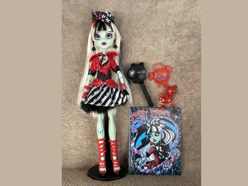 La version Sweet Screams de Frankie Stein, de 2012, présente un design inspiré des bonbons qui en fait l’une des poupées les plus uniques de la série. La tenue de la poupée, pleine de couleurs pastel et d’accessoires sur le thème des bonbons, s’impose comme une version amusante et ludique de Frankie. Sweet Screams Frankie est évalué entre 150 $ et 300 $, selon son état et si elle est toujours dans la boîte d’origine. Le design à lui seul en fait un objet recherché pour les collectionneurs.