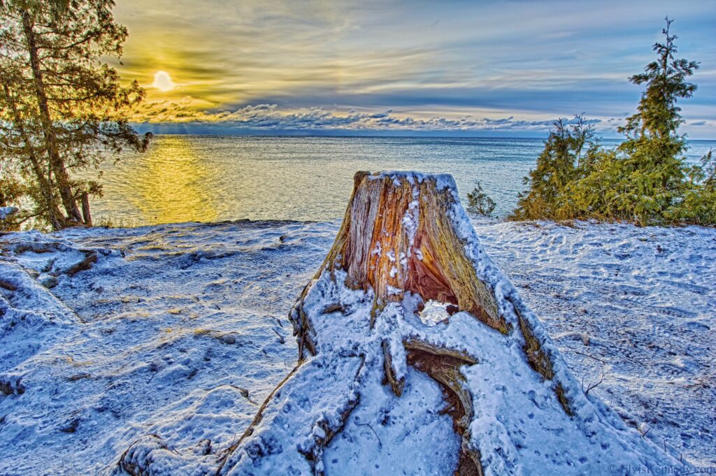 Le comté de Door est une charmante destination au bord du lac qui offre une vue imprenable sur les rives gelées du lac Michigan. Les mois d’hiver apportent la tranquillité à la région, avec le lac gelé et les rives enneigées. Les visiteurs peuvent se promener le long du lac et s’arrêter dans l’un des cafés chaleureux pour prendre une boisson chaude ou un repas léger. Les cafés proposent des spécialités locales, notamment des soupes copieuses et des pâtisseries fraîchement préparées, à déguster tout en admirant le paysage hivernal.