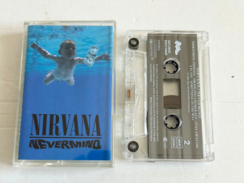 Sortie en 1991, la cassette présente l’image emblématique d’un bébé nageant vers un billet d’un dollar accroché à un crochet. La pochette controversée, ainsi que l’ascension fulgurante du groupe, ont permis à cette cassette de se démarquer des autres cassettes de l’époque. Compte tenu de l’énorme impact culturel de l’album, cette cassette particulière est désormais évaluée entre 200 et 300 dollars. Son design visuel et son lien avec le mouvement grunge en font un objet de collection très recherché. L’emballage particulier, combiné à l’héritage de Nirvana, continue de faire de cette cassette un article prisé.