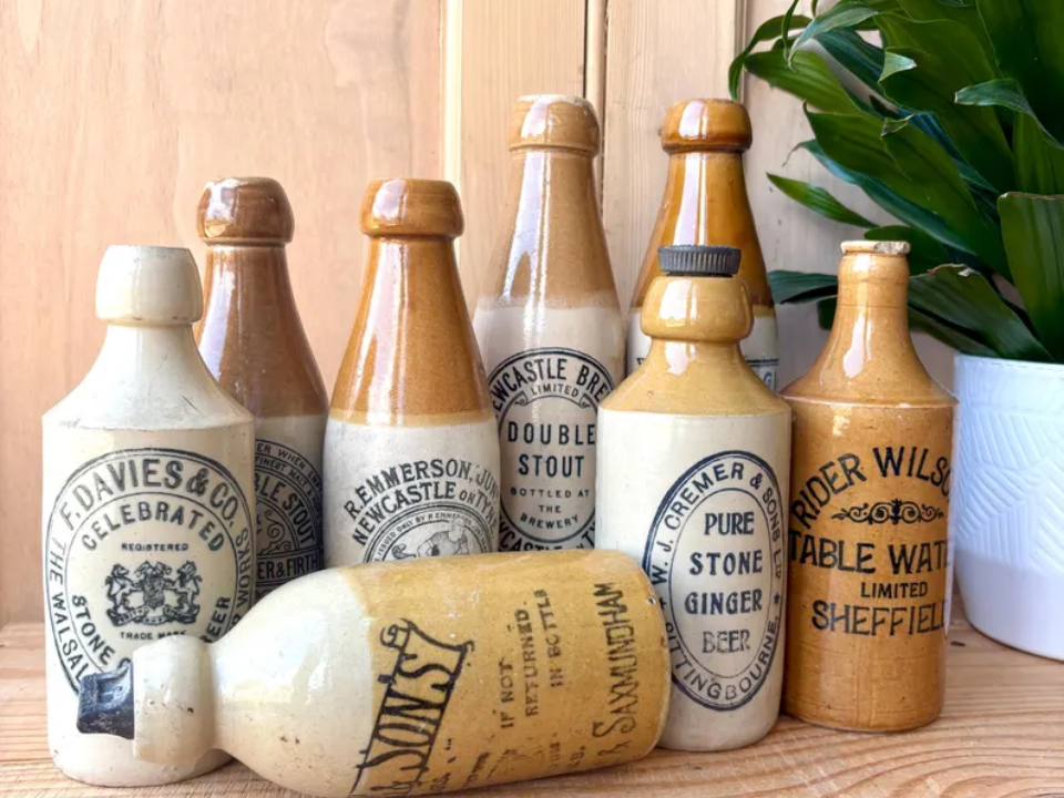 Les bouteilles de bière en grès sculpté des années 1800 sont très appréciées pour leur savoir-faire et leur design uniques. Ces bouteilles, portant souvent des noms de brasserie en relief, étaient fabriquées à partir de grès durable, ce qui les distingue des bouteilles en verre. Les sculptures distinctives confèrent à ces bouteilles une qualité artistique qui séduit les collectionneurs. Selon la rareté et l’état, ces bouteilles peuvent coûter entre 300 et 2 000 dollars.