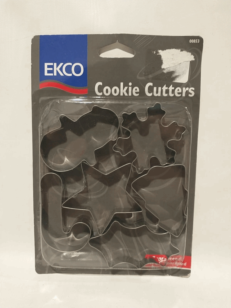 Cet ensemble Ekco, sorti en 1997, comprend des formes telles que des flocons de neige, des cannes de bonbon, des feuilles de houx et des étoiles. Sa nature de collection vient du fait qu’il faisait partie de l’ère ultérieure des couteaux à métaux largement produits avant que les ensembles en plastique ne deviennent courants. Les valeurs varient généralement entre 15 et 20 dollars américains lorsque l’emballage reste intact. Les collectionneurs apprécient les bords nets des emporte-pièces Ekco. Les pièces neuves et anciennes suscitent le plus grand intérêt.