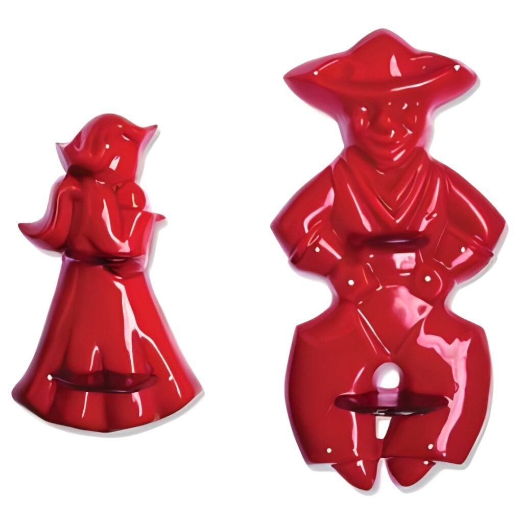 Mirro a créé plusieurs ensembles d’emporte-pièces en métal dans les années 1950, et leurs formes de vacances restent les préférées des collectionneurs. Beaucoup apprécient Mirro pour sa longue tradition de plats de cuisson en métal solide. Ces emporte-pièces comportent souvent des cloches, des arbres, des bonhommes de neige et d’autres formes familières. Les valeurs se situent généralement autour de 25 $ US. Les exemples sans rouille sont les plus souhaitables.