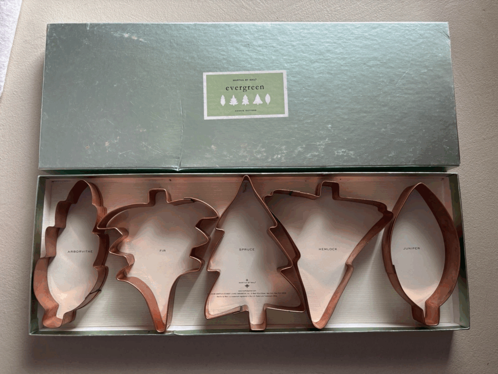 Cet ensemble Martha Stewart Everyday bien connu du début des années 2000 a gagné en popularité en raison de ses formes classiques et simples. De nombreux collectionneurs recherchent cette marque en raison de son histoire de produits de cuisine de haute qualité. Les ensembles comprennent généralement une figurine d’arbre, de renne, d’étoile, de mitaine et de pain d’épice. Les valeurs varient généralement de 18 $ US à 30 $ US. Un emballage qui reste intact a tendance à augmenter la valeur.