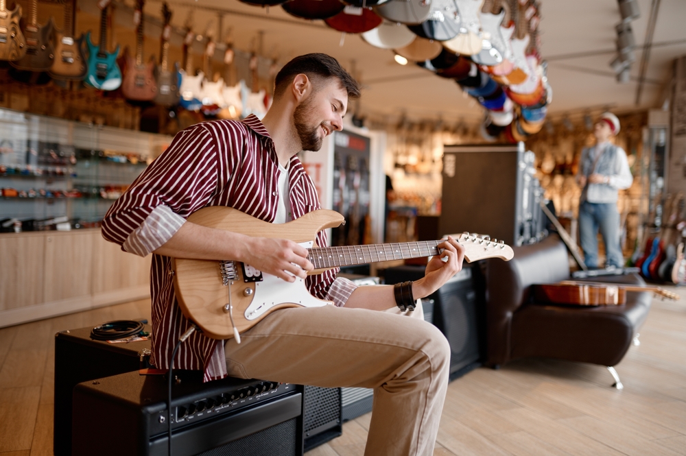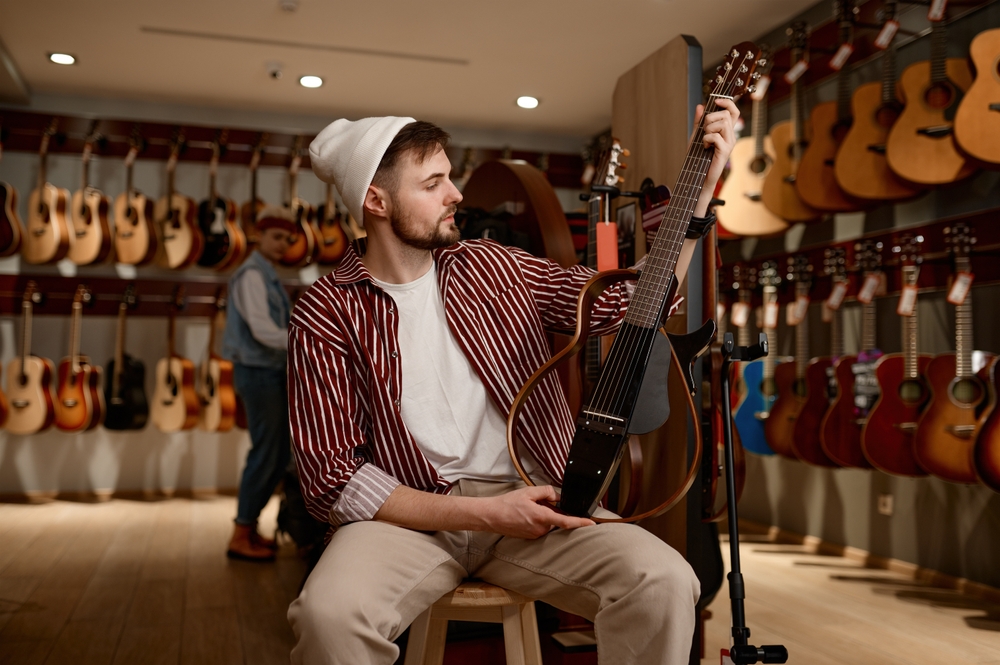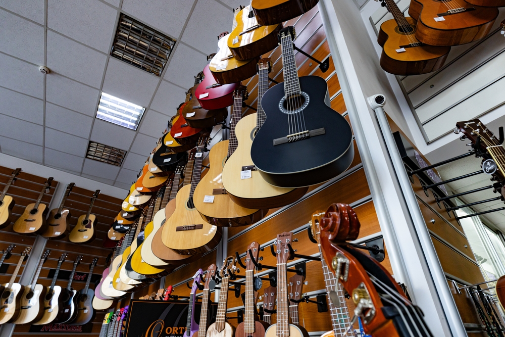 Ils ont également tendance à gérer un grand nombre d’instruments de meilleure qualité pour lesquels les acheteurs s’attendent à une jouabilité nette. Les magasins au service de cette clientèle prennent généralement les configurations et les contrôles au sérieux. Un manche stable doit subir des ajustements de relief normaux et tenir l’accord sans drame. Lorsqu’un magasin bâtit son activité sur des clients fidèles et satisfaits, il filtre généralement les guitares à problèmes évidents. (Notez qu’il ne s’agit pas d’une photo réelle du magasin de guitares en ligne de renommée mondiale Music Zoo.)