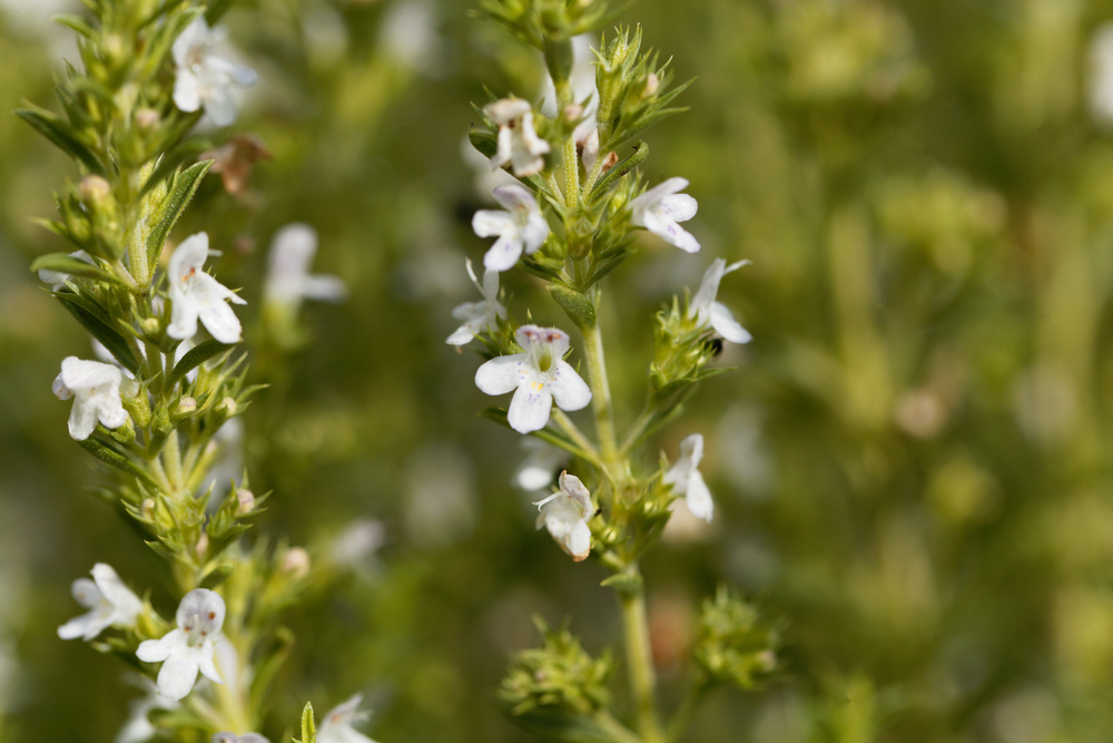 La sarriette des champs est une plante herbacée vivace aux tiges ligneuses et aux petites feuilles fermes qui tolèrent bien le gel. Contrairement à son homologue d’été, il reste actif pendant les mois les plus froids. Le port compact aide à protéger sa base de l’exposition au froid. Même après de légères chutes de neige, il reste souvent vert et utilisable.