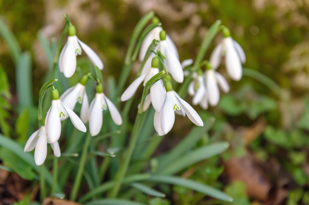 Les perce-neige sont de petits bulbes qui fleurissent très tôt, poussant souvent à travers le sol gelé et la neige légère. Leurs délicates fleurs blanches pendent comme de minuscules cloches au-dessus d’étroites feuilles vertes. Ces bulbes survivent aux rigueurs de l’hiver et fleurissent dès que le sol commence à dégeler. De nombreux jardiniers les plantent en grappes afin que les fleurs forment de douces dérives dans le jardin. Leur apparition signale le début du printemps.
