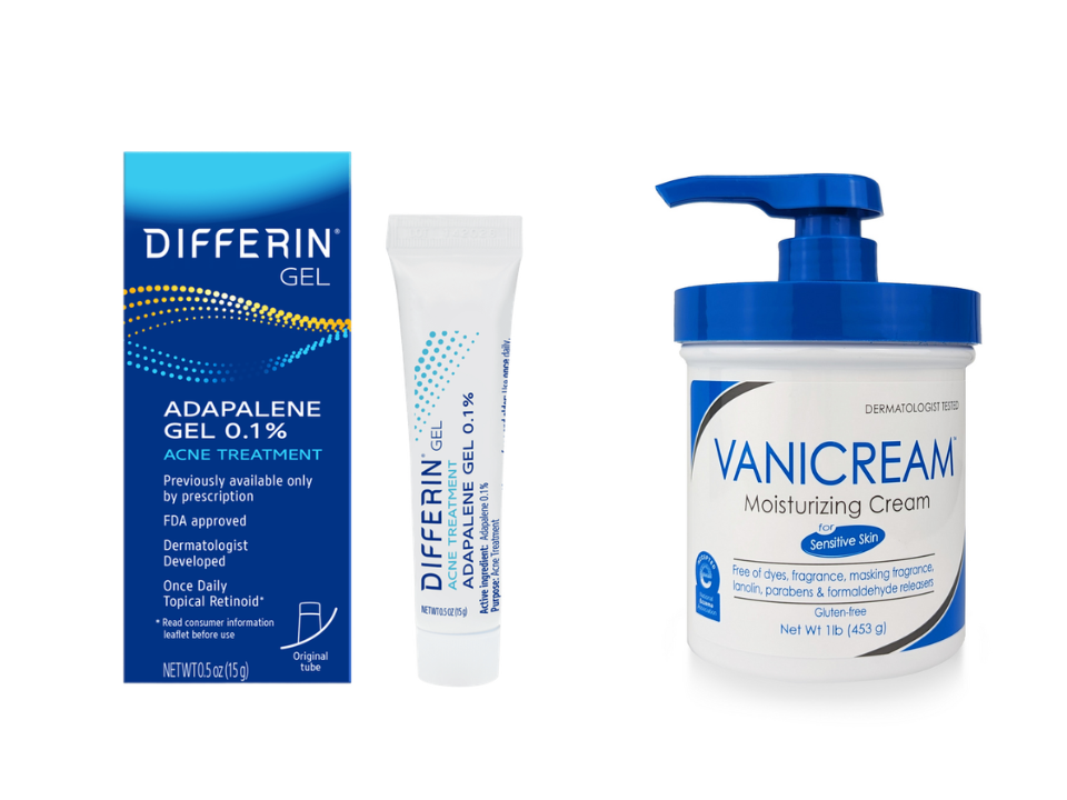 Gel Differin (adapalène 0,1 pour cent) et crème hydratante Vanicream