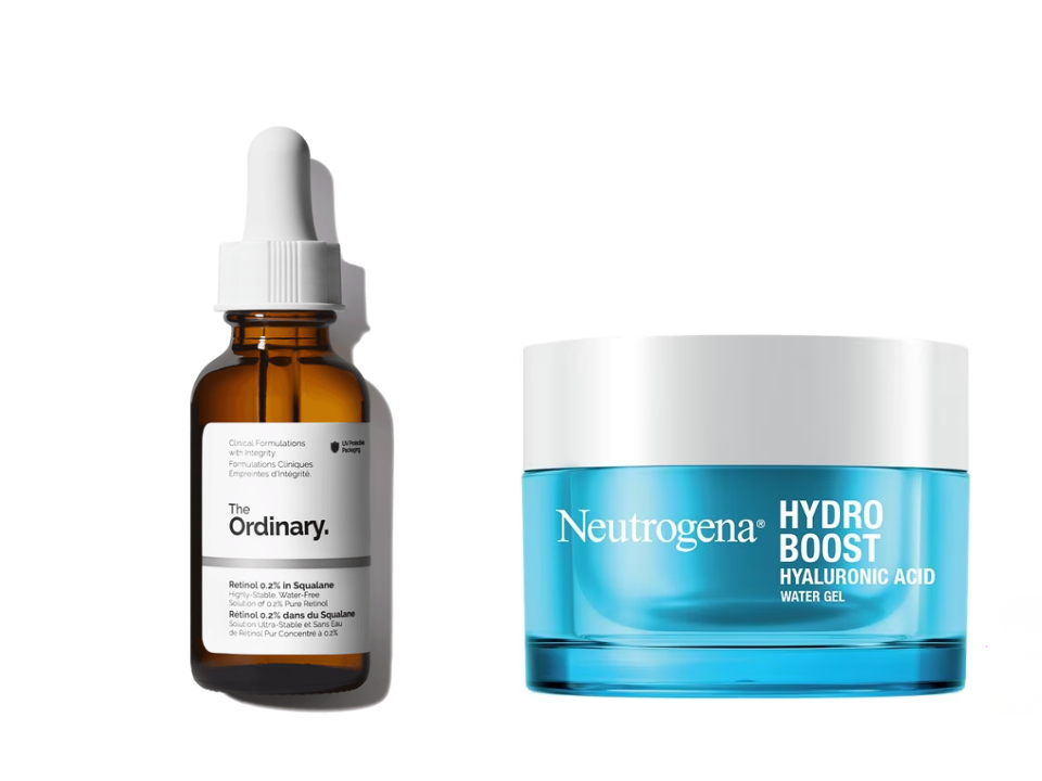Le rétinol 0,2 pour cent de The Ordinary dans du squalane est une excellente option adaptée aux débutants qui combine les avantages du rétinol avec les propriétés apaisantes du squalane. Cette formulation aide à cibler les ridules, la texture et l’acné, tout en minimisant les irritations grâce à sa plus faible concentration. Le gel aquatique Hydro Boost de Neutrogena est un hydratant riche en acide hyaluronique, qui aide à attirer l’humidité vers la peau. Cette combinaison garde la peau douce, rebondie et bien hydratée.