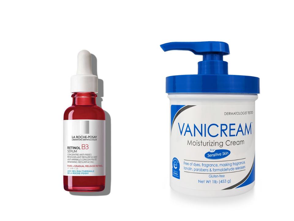 Le Sérum Rétinol B3 de La Roche-Posay associe les bienfaits régénérateurs cutanés du rétinol aux propriétés apaisantes de la vitamine B3 (niacinamide). Cette combinaison aide à réduire les ridules, à améliorer la texture de la peau et à calmer les irritations causées par l’utilisation du rétinol. La crème hydratante Vanicream est conçue pour être douce pour les peaux sensibles, offrant une hydratation essentielle sans allergènes courants comme les parfums ou les colorants. Sa formule riche et non grasse est parfaite pour apaiser la peau après avoir utilisé du rétinol.