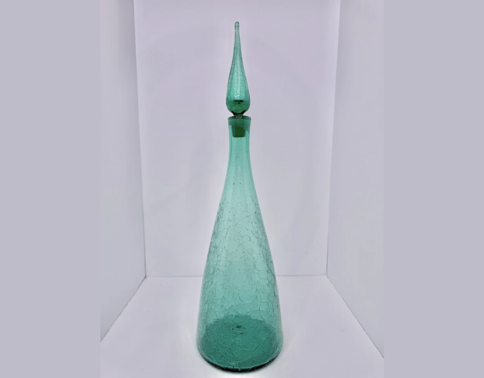 Une carafe vert d’eau Blenko ressemble à un cadeau attentionné pour quelqu’un qui aime recevoir. Sa couleur douce et sa forme fluide ajoutent de la personnalité au service de bar ou aux présentations de table. Les carafes de cette couleur se vendent généralement entre 150 $ et 260 $ en fonction des marques et de l’état du fabricant. Ils sont parfaits pour servir du vin, des spiritueux ou même de l’eau infusée. Cette pièce se démarquera dans n’importe quelle collection de verrerie grâce à sa teinte unique.