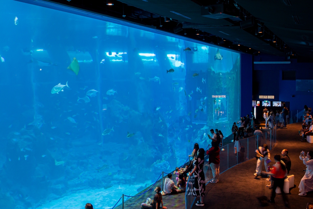 Installé dans un immense complexe commercial à Dubaï, cet aquarium accueille les visiteurs avec un réservoir suspendu qui remplit plusieurs étages d’eau et d’activité. Des requins tigres des sables et de nombreux gros poissons glissent d’une manière immersive, même de loin. Un long tunnel sous le réservoir invite les familles à marcher lentement tout en regardant la vie se dérouler de tous côtés, rendant les moments à la fois calmes et excitants. Les adultes ont tendance à apprécier les prouesses techniques, tandis que les enfants sont attirés par la taille de ce qu’ils voient.