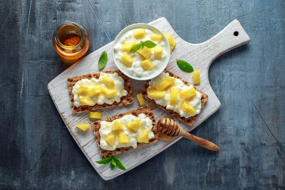 Le fromage cottage accompagné d’ananas est une option délicieuse et saine pour une collation. Vous pouvez préparer cette boîte à collations pour environ 3 $ à 5 $, selon le type de fromage cottage. La texture crémeuse du fromage blanc se marie parfaitement avec la douceur de l’ananas. C’est une excellente collation pour vous aider à rester énergique tout au long de la journée.
