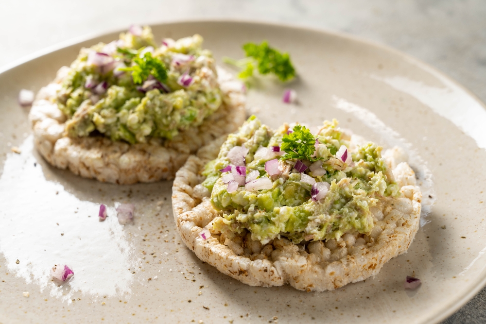 Une boîte de collations à base de gâteaux de riz et d’avocat est une option simple mais satisfaisante pour une bouchée rapide. Cette collation peut être préparée pour environ 4 $ à 6 $, selon le coût des avocats. Le gâteau de riz offre une base croustillante, tandis que l’avocat ajoute des graisses saines et du crémeux. C’est une option délicieuse et abordable qui vous rassasiera sans trop dépenser.