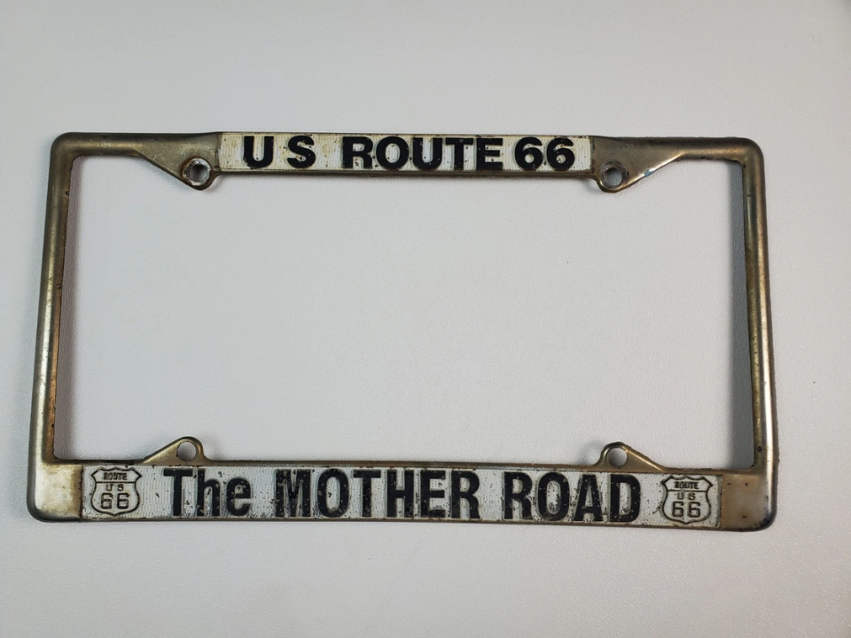Des cadres comme celui-ci évoquent les arrêts en bordure de route, les restaurants et les motels le long de l’ancienne autoroute. Les collectionneurs les apprécient car ils rappellent une période avant que les voyages interétatiques ne dominent les longues distances. Certains exemples originaux montrent des autocollants ou des marquages ​​provenant de lieux visités il y a longtemps. Un cadre de licence Route 66 en bon état peut coûter environ 130 $.