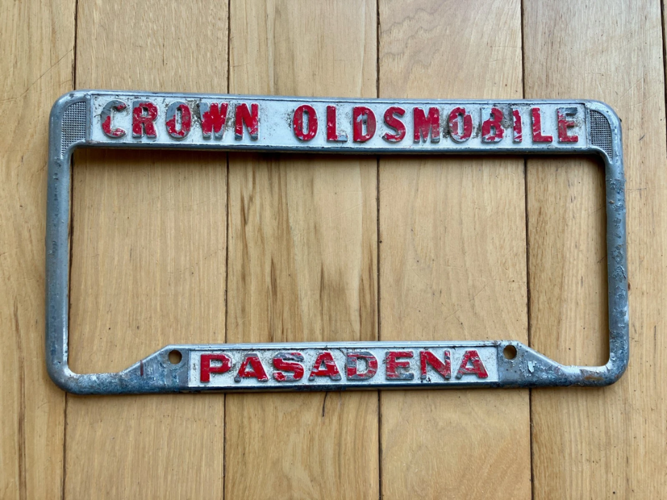 Ce cadre a été proposé par les concessionnaires Oldsmobile aux acheteurs de voitures neuves au début des années 1970. Il comprend l’ancien logo de la fusée et les coordonnées du revendeur. Les collectionneurs de voitures classiques recherchent ce type car il est lié à une marque américaine bien connue avec une longue histoire de production.