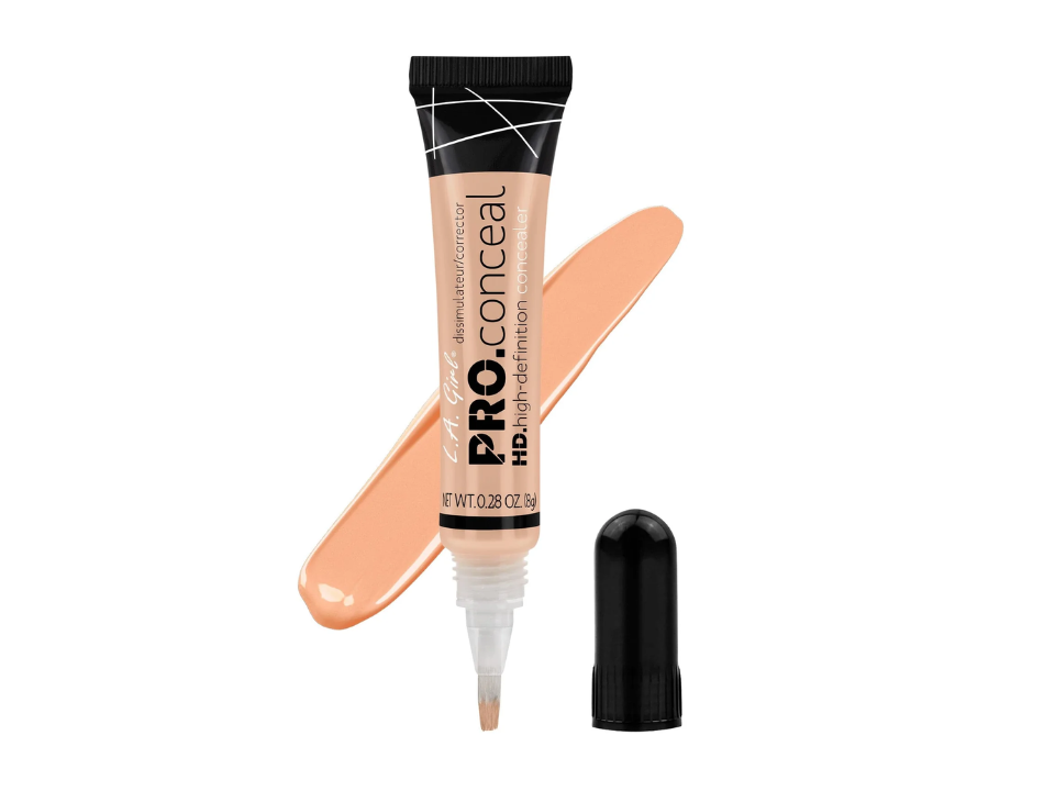 Certains correcteurs font également office de correcteurs, et c’est le cas de certaines nuances LA Girl HD Pro Conceal. Le ton pêche annule les ombres bleues et violettes, de sorte que votre correcteur n’a pas l’air cendré sur le dessus. Utilisez-le après la crème hydratante, puis déposez-en une petite quantité près du coin interne et le long du creux. Mélangez vers l’extérieur et gardez-le mince.