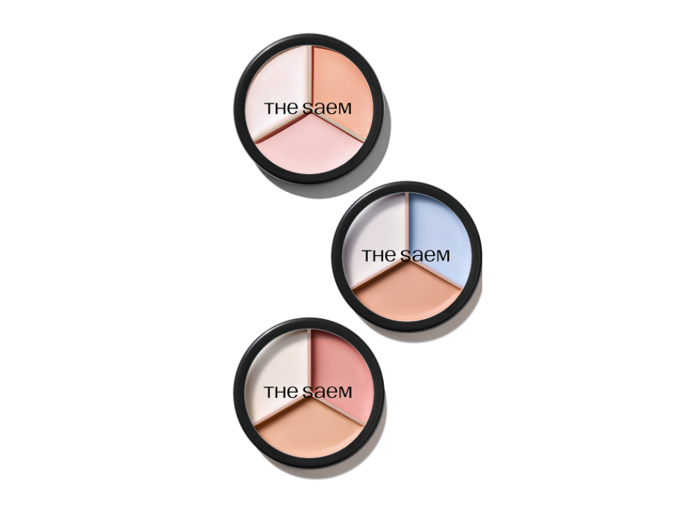 Un compact avec plusieurs plateaux peut faciliter la correction, surtout si vous aimez réaliser votre base par étapes. Le correcteur triple pot Saem Cover Perfection vous permet de corriger d’abord, puis de recouvrir d’une teinte chair. Utilisez-le lorsque vos cercles sont plus profonds et que vous souhaitez contrôler le placement. Tapotez la teinte correctrice dans la zone la plus sombre, puis superposez légèrement la teinte chair.
