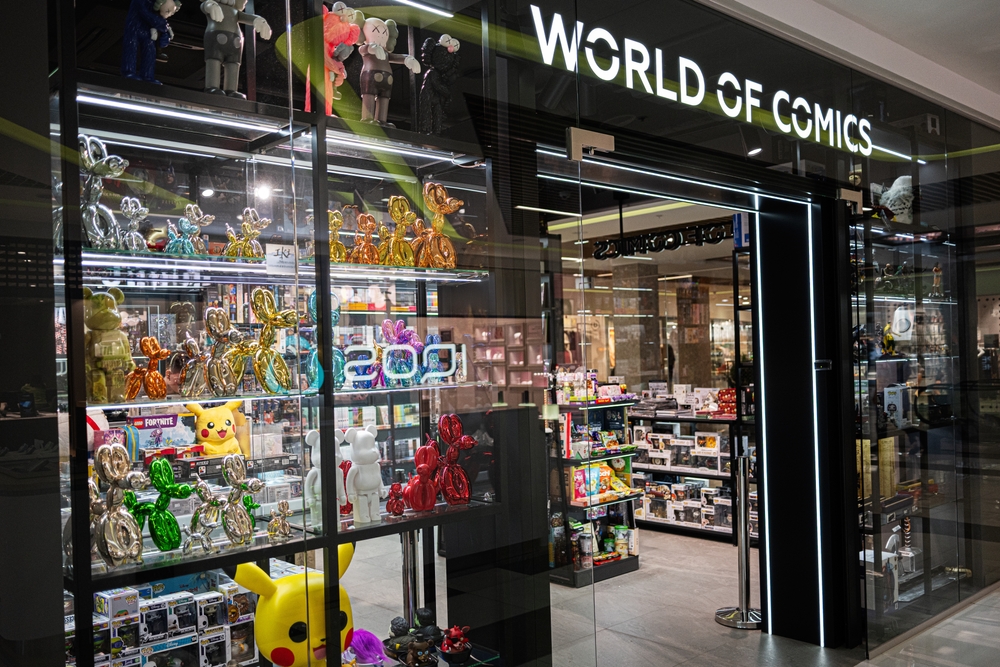 Les magasins de bandes dessinées proposent souvent des souvenirs Pokémon, notamment des cartes et des jouets rares. Ces magasins proposent généralement des articles que les fans de diverses franchises trouveront attrayants, mais les produits Pokémon se démarquent souvent par leur popularité continue. Les prix des articles peuvent varier de 5 $ pour les objets de collection courants à 100 $ ou plus pour les articles en édition limitée.
