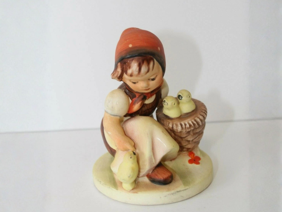 Un petit poussin Goebel jaune est le genre de figurine que beaucoup de gens ajoutent aux présentoirs de lapins pour plus d’équilibre. Il est généralement décrit comme un petit poussin de Pâques en porcelaine avec une pose assise soignée et une finition brillante. Cette taille compacte le rend facile à placer à côté des œufs, des lapins et des petites jardinières printanières. Une juste valeur actuelle est d’environ 10 $ à 14 $.