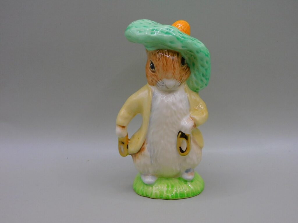 Benjamin Bunny est l’une des figures de lapin que les gens mentionnent encore et encore lorsque les figurines d’animaux classiques apparaissent. Il est communément identifié comme une figurine en porcelaine de Beswick England liée au numéro Beatrix Potter de 1948, avec des prix qui peuvent varier considérablement selon la version et l’état. Il reste populaire car il rejoint l’histoire du livre pour enfants avec des œuvres de céramique anglaises bien connues. Une fourchette de valeur actuelle réaliste est d’environ 10 $ à 35 $, les exemples les plus solides allant plus haut.