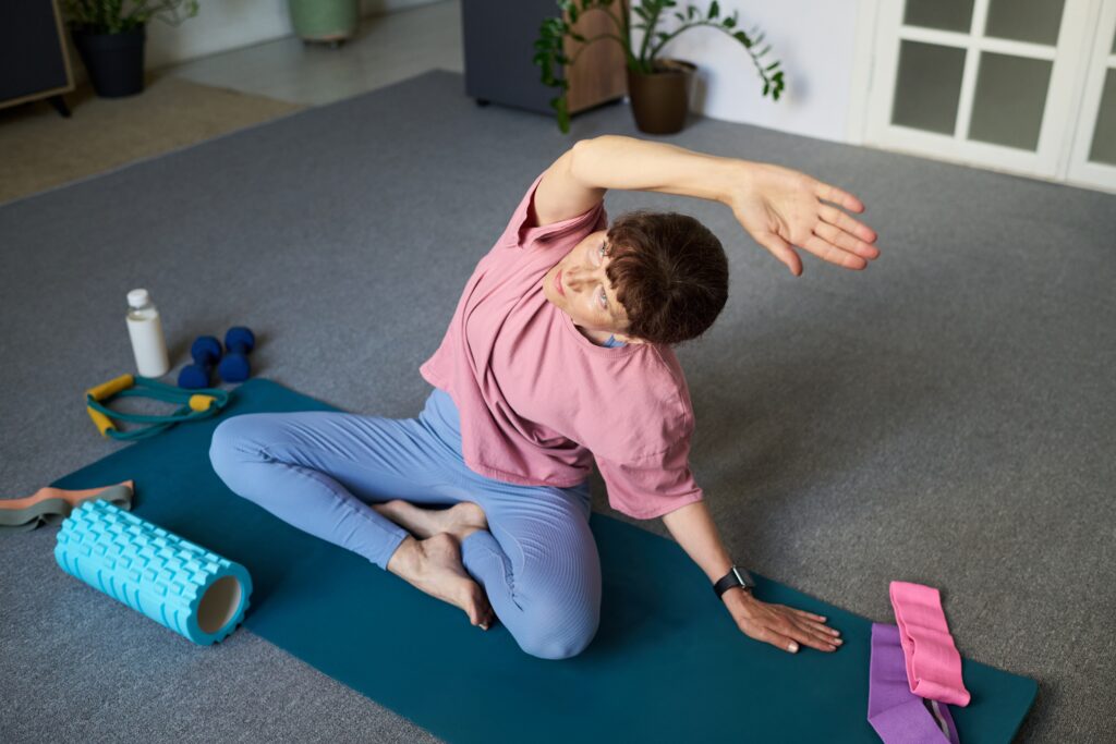 Un vélo stationnaire vertical peut être adapté aux genoux lorsque la résistance reste légère et que votre pédalage reste fluide. C’est un bon choix pour une séance rapide par temps froid. Gardez vos épaules détendues et votre prise lâche afin que le haut de votre corps ne se tende pas. Pensez à faire des cercles avec vos pieds plutôt que d’appuyer fort.