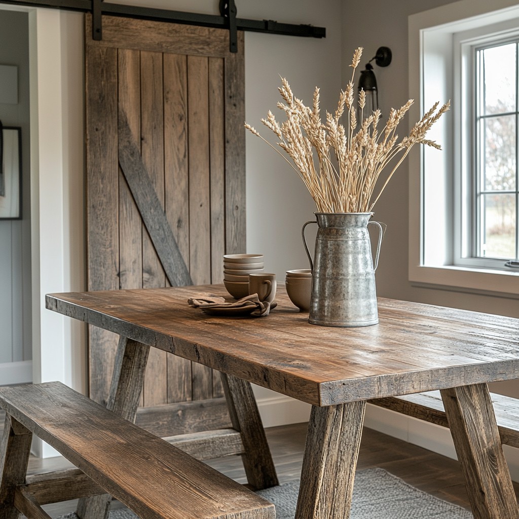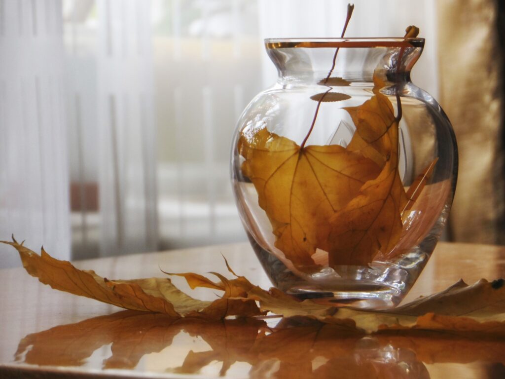 Un vieux pichet métallique fait un vase rustique pour les branches de feuilles colorées ou d’hortensias séchés. Le mélange de métal et d’éléments naturels est parfaitement automnal. Des tiges de baies ou des herbes peuvent également être ajoutées pour plus de texture.