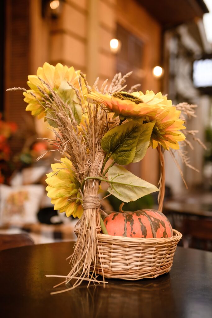 La taille d’une citrouille et la remplissage d’un bouquet acheté en magasin transforme instantanément une gourde ordinaire en une pièce maîtresse festive. Les tournesols, les mamans et les œillets sont toutes des options abordables qui semblent dynamiques contre la coquille d’orange. La citrouille elle-même agit à la fois comme un conteneur et une décoration, ce qui en fait une façon à faible coût de donner le ton aux rassemblements d’automne.