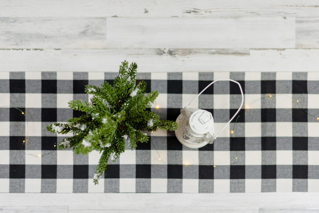 L’utilisation d’une écharpe à carreaux comme coureur de table ajoute instantanément la couleur et le motif à votre table d’automne. La superposition de citrouilles, de pinces et de bougies sur le dessus lui donne un look fini. C’est un excellent moyen de réutiliser quelque chose que vous possédez déjà.