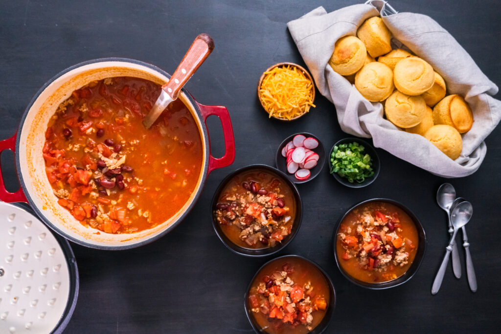 Le chili est un déjeuner chaud de février qui se transporte bien et est encore meilleur le lendemain. Il est copieux sans être lourd et vous pouvez l’étirer avec du riz, du pain de maïs ou des pommes de terre au four. Une marmite du dimanche peut couvrir plusieurs repas sans presque aucun travail supplémentaire.