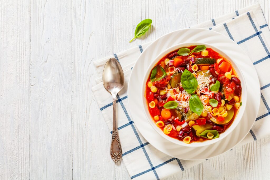 Minestrone en gros lots avec des légumes verts supplémentaires