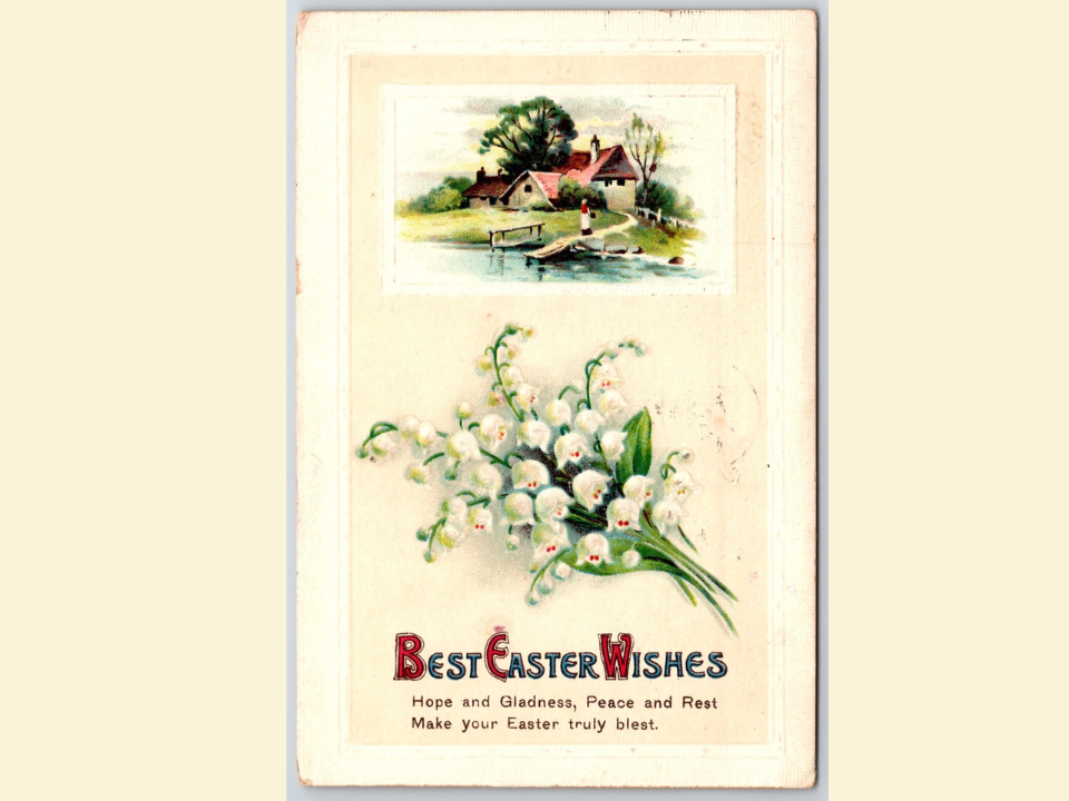 Raphael Tuck and Sons est l’un des meilleurs noms à collectionner lorsque les cartes postales printanières apparaissent, car l’entreprise est étroitement liée à l’âge d’or des cartes de vœux. Une carte de vœux de Pâques datant d’environ 1910 de ce fabricant présente généralement des détails en relief, des couleurs printanières douces et des œuvres d’art religieuses ou florales qui semblent toujours attrayantes dans un album ou un cadre. De nombreux collectionneurs les aiment parce qu’ils se sentent vieux de la meilleure façon possible et qu’ils ont encore beaucoup d’attrait à exposer. Pour une seule carte utilisée en bon état, la juste valeur de fonctionnement se situe souvent entre 9 et 16 dollars.