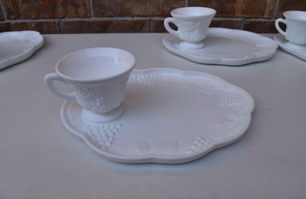 Ensemble d’assiettes et de tasses à collation en verre de lait Colony Harvest