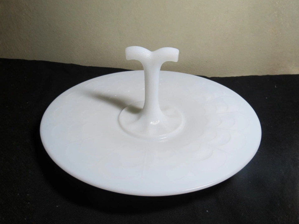 Imperial Glass Ohio Plateau à poignée centrale en verre de lait de raisin vintage