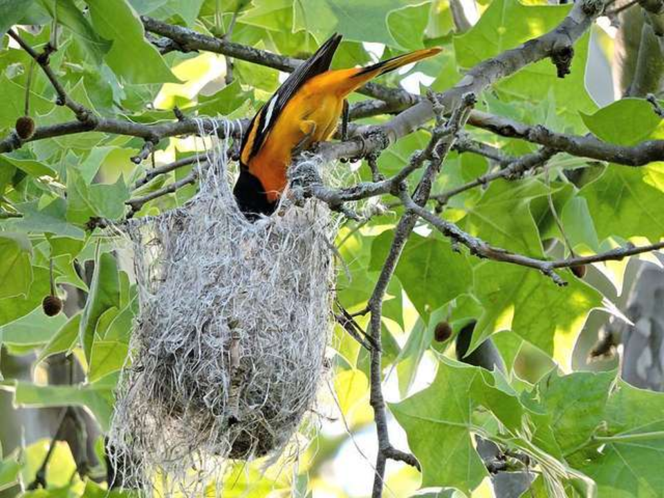 Étant donné que le nid est suspendu à des branches minces, il est très important de garder vos distances. Tirer sur la branche, secouer l’arbre ou essayer de rester trop longtemps juste en dessous peut créer un risque. Les Orioles préfèrent un endroit calme pendant qu’ils s’occupent de leurs petits. Le choix le plus sûr est d’admirer le nid de loin et de laisser l’arbre immobile.