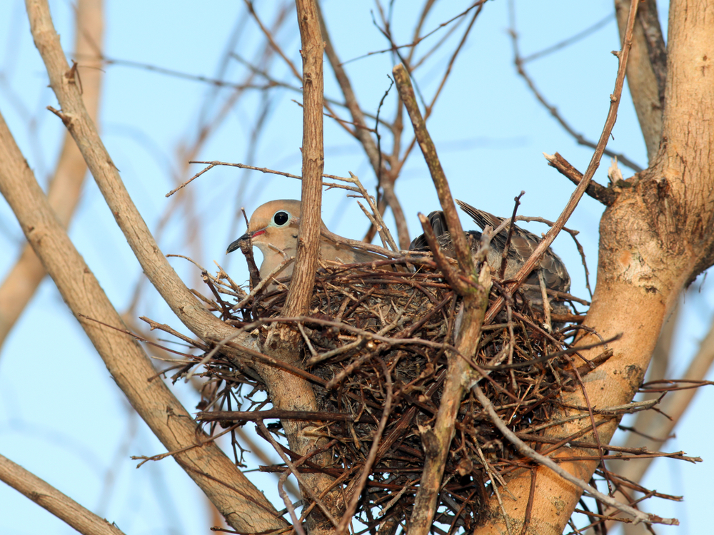 À première vue, un nid de tourterelles en deuil peut sembler presque trop simple à maintenir ensemble. Il est généralement constitué d’une couche lâche de fines brindilles et peut reposer sur une branche, une poutre, une jardinière ou le bord du toit. La forme plate lui confère un aspect léger et fragile qui le distingue des nids de coupes plus profonds. Ce look simple explique en partie pourquoi il surprend tant de gens.