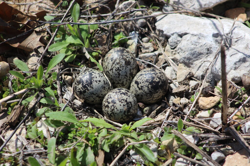 En terrain découvert, un nid de cerf volant peut être si simple que les gens passent devant sans le savoir. L’oiseau pond ses œufs dans une éraflure peu profonde bordée de petites pierres ou de morceaux de gravier, généralement dans du gravier, de la terre ou de l’herbe courte. Comme il n’y a pas de forme de nid surélevée, les œufs s’intègrent très bien. Cela en fait l’un des nids les plus faciles à perturber par accident.
