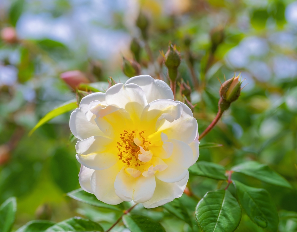 Les roses couvre-sol doivent être taillées à la fin de l’hiver pour éliminer toute croissance morte, cassée ou malade. Cela garantit que l’usine peut se concentrer sur la production de cannes fraîches et saines. Ces roses bénéficient d’une légère taille pour conserver leur forme et favoriser une croissance dense, essentielle pour couvrir le sol de fleurs. Nourrir avec un engrais équilibré pour roses au début du printemps fournit les nutriments nécessaires à une croissance saine. Le paillage aide à maintenir les niveaux d’humidité dans le sol et à protéger les racines par temps froid.