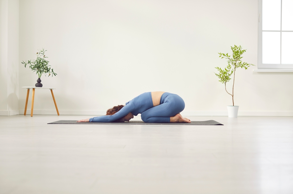 Commencez à quatre pattes avec vos poignets directement sous vos épaules et vos genoux sous vos hanches. Asseyez-vous lentement sur vos talons, en étendant vos bras devant vous sur le sol. Abaissez votre front sur le tapis, permettant à votre corps de se détendre pendant l’étirement. Maintenez cette position pendant 30 secondes à une minute, en vous concentrant sur votre respiration tout en relâchant toute tension dans votre dos, vos hanches et vos épaules. Si l’étirement est intense, utilisez un coussin sous vos genoux pour plus de confort.