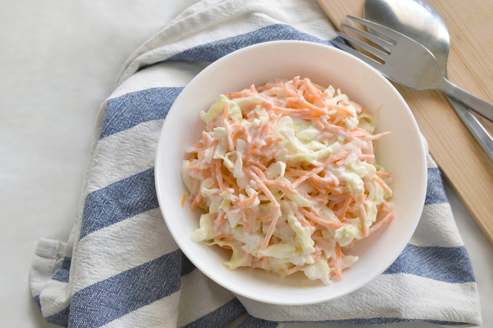 Pour la salade de chou, mélangez 4 tasses de chou râpé avec 1 carotte râpée, 1/4 tasse de mayonnaise, 1 cuillère à soupe de vinaigre, 1 cuillère à café de sucre et 1/4 cuillère à café de sel. Remuer jusqu’à ce que tout soit enrobé, puis réfrigérer pendant 15 minutes si vous avez le temps. Placez-le à côté du poulet ou empilez-en un peu sur un sandwich avec du poulet râpé. La texture fraîche et crémeuse donne au repas une sensation de fraîcheur.